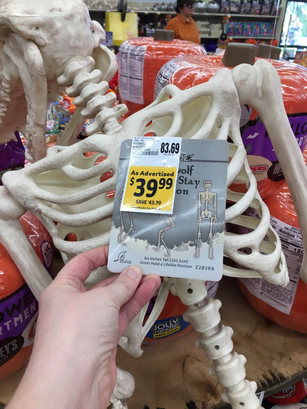 I first saw him in a few different grocery stores, but couldn’t bring myself to pay full price for him. I’m hella enthusiastic about Halloween but also on a budget!